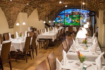 Für Gruppen bis 100 Personen stehen das Hochzeitszimmer (45 Plätze) und das Gewölbe (55 Plätze) zur Verfügung.