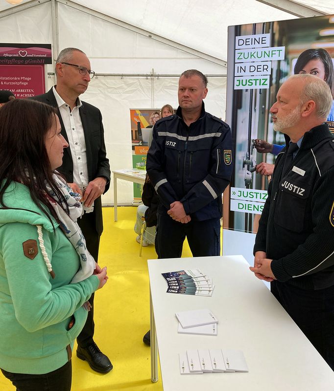 Fast 1.000 Schülerinnen und Schüler aus dem Landkreis machten sich in dieser Woche auf den Weg ins Steinhaus Bautzen. Der Berufemarkt steht im Lehrplan vieler Schulen, in diesem Jahr in 21 von ihnen. Die IHK Dresden, mit der Geschäftsstelle Bautzen, holte dieses Jahr über 50 Aussteller in das Steinhaus Bautzen. Auch drei Workshops gaben die Möglichkeit zur Berufsorientierung. Oberbürgermeister Karsten Vogt Bautzen nutzte gemeinsam mit Bautzens Wirtschaftsförderin Doreen-Charlotte Hantschke die Gelegenheit, aktuelle Ausbildungsangebote kennenzulernen und mit den Unternehmen vor Ort über bestehende Lagen auf dem Fachkräftemarkt zu sprechen. Allein in der Stadt Bautzen gibt es über 1.200 Unternehmen, mit knapp 26.000 sozialversicherungspflichtig Beschäftigten. Somit ein enormes Potenzial auf dem Ausbildungs- und Arbeitsmarkt!