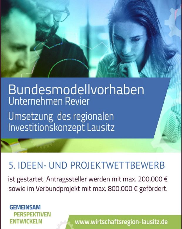 Innerhalb des Programms „Unternehmen Revier“ und mit dem Regionalen Investitionskonzept (RIK) Lausitz werden konkrete teilregionale Ansätze und Projekte gesucht, die Beiträge zur Strukturentwicklung im Lausitzer Braunkohlerevier leisten. Im Vordergrund stehen dabei innovative Ideen verbunden mit einhergehender Geschäftsfelderweiterung oder Produktentwicklungen von Unternehmen in der Wirtschaftsregion Lausitz. Ausführliche Informationen entnehmen Sie bitte dem Projektaufruf (PDF zum Dowonload)