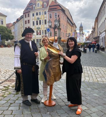Im Wettbewerb „Ab in die Mitte! Die City-Offensive Sachsen“ 2023 erhielt die Stadt Bautzen am Dienstag, dem 14. November 2023, den Sonderpreis „Blühendes Zentrum“. Die feierliche Preisverleihung im Theater in Meißen besuchten Bürgermeister Dr. Robert Böhmer gemeinsam mit Wirtschaftsförderin Doreen-Charlotte Hantschke und Innenstadtmanagerin Annett Scholz-Michalowski. Mit dem Sonderpreis soll der Bautzener Postplatz im nächsten Jahr zum Blühen gebracht werden. Die prächtigen Farbtupfer werden nicht nur für leuchtend bunte Straßen sorgen, sie übermitteln auch Besuchern der Stadt ein einladendes Gefühl. Bürgermeister Dr. Böhmer freut sich bei der Preisvergabe über eine lustige Plakette des bekannten Leipziger Künstlers Michael Fischer-Art und natürlich auch über den Preis an sich: „Durch den Sonderpreis können wir die Freude an der Natur noch mehr in den Fokus rücken. Bienenfreundliche Blumenarrangements können auch im öffentlichen Raum für eine artenreiche Flora und Fauna sorgen.“