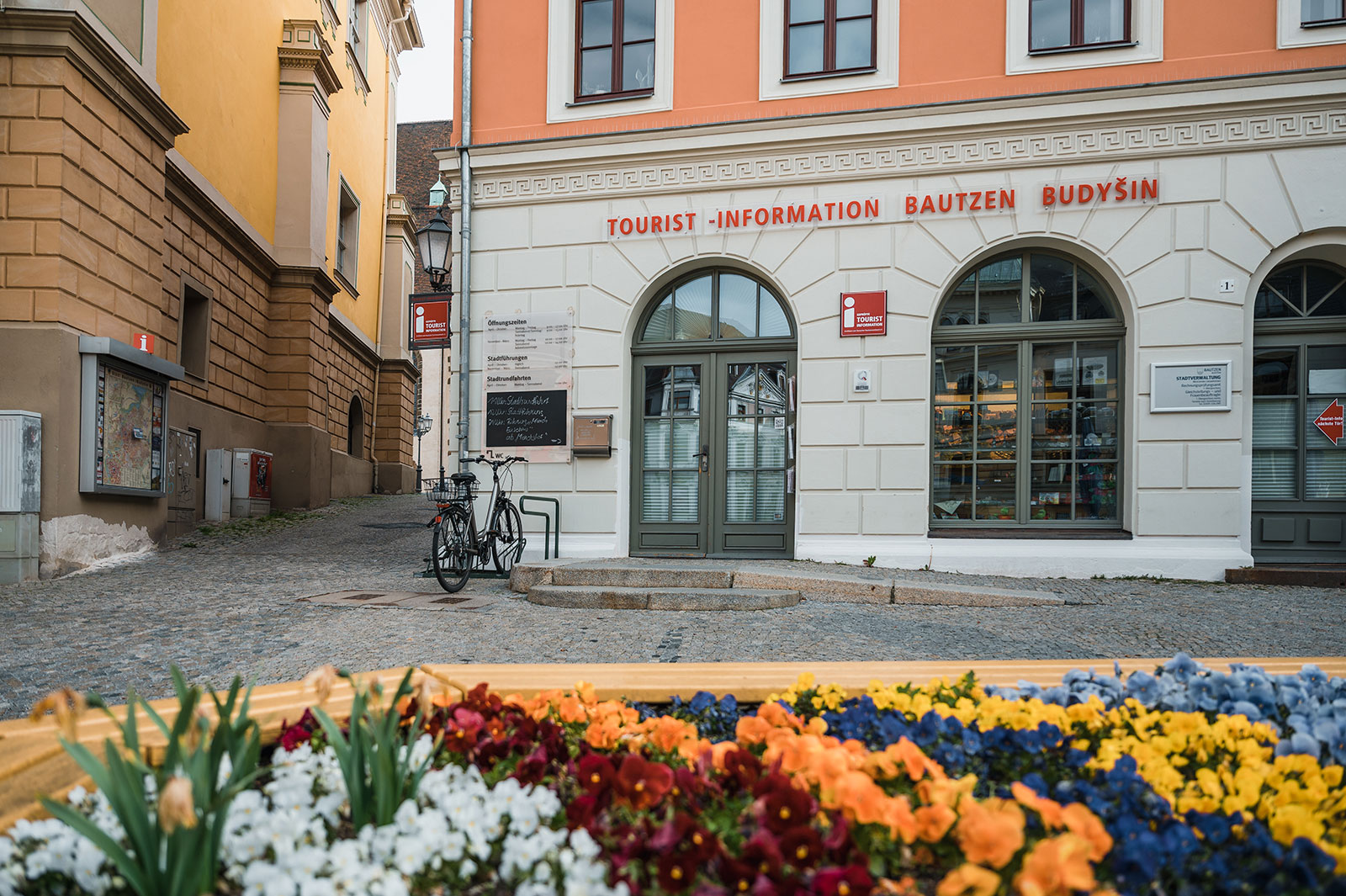Blumenbeet auf dem Hauptmarkt vor der Tourist-Information