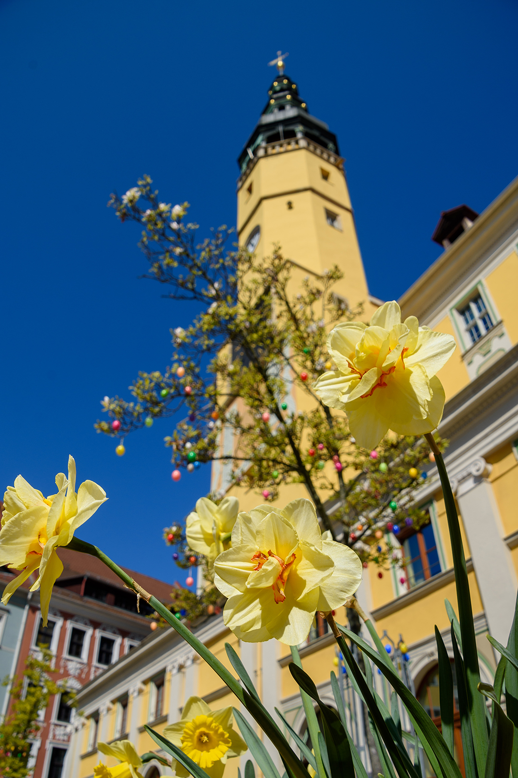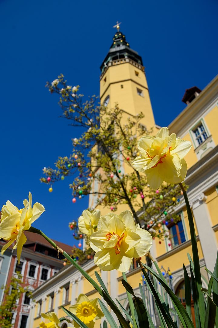 Osterschmuck vor dem Bautzener Rathaus
