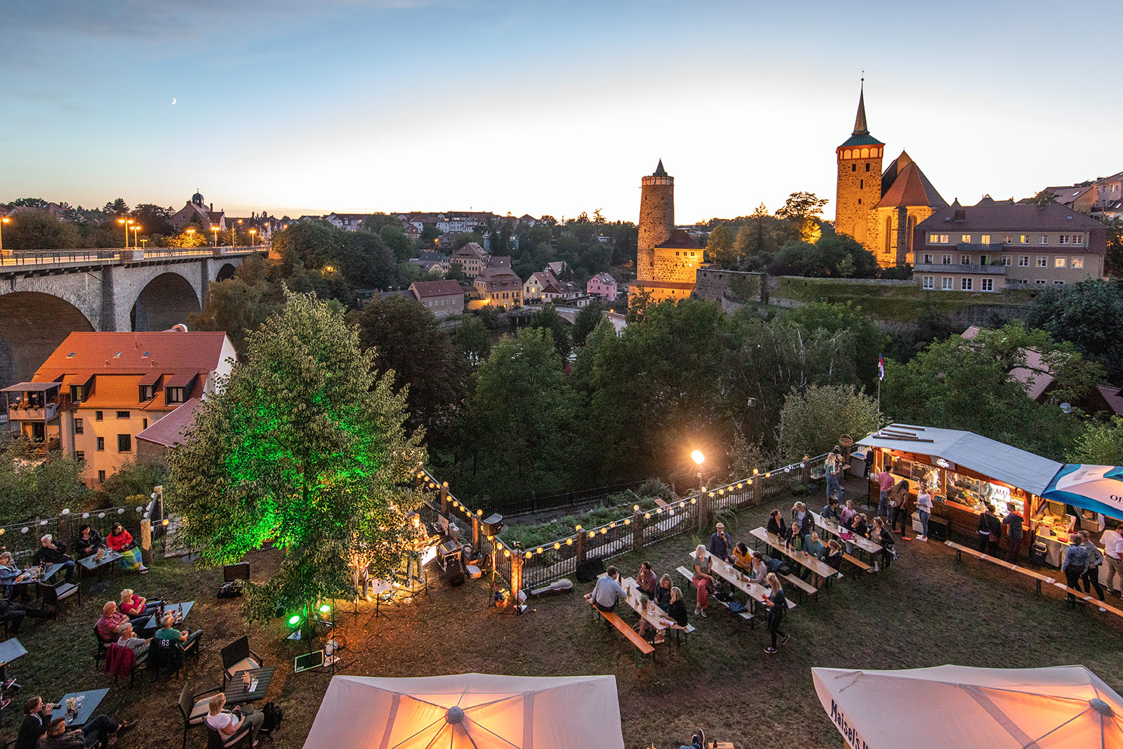 Blick auf Sundowner mit Altstadtsilhouette Bautzen