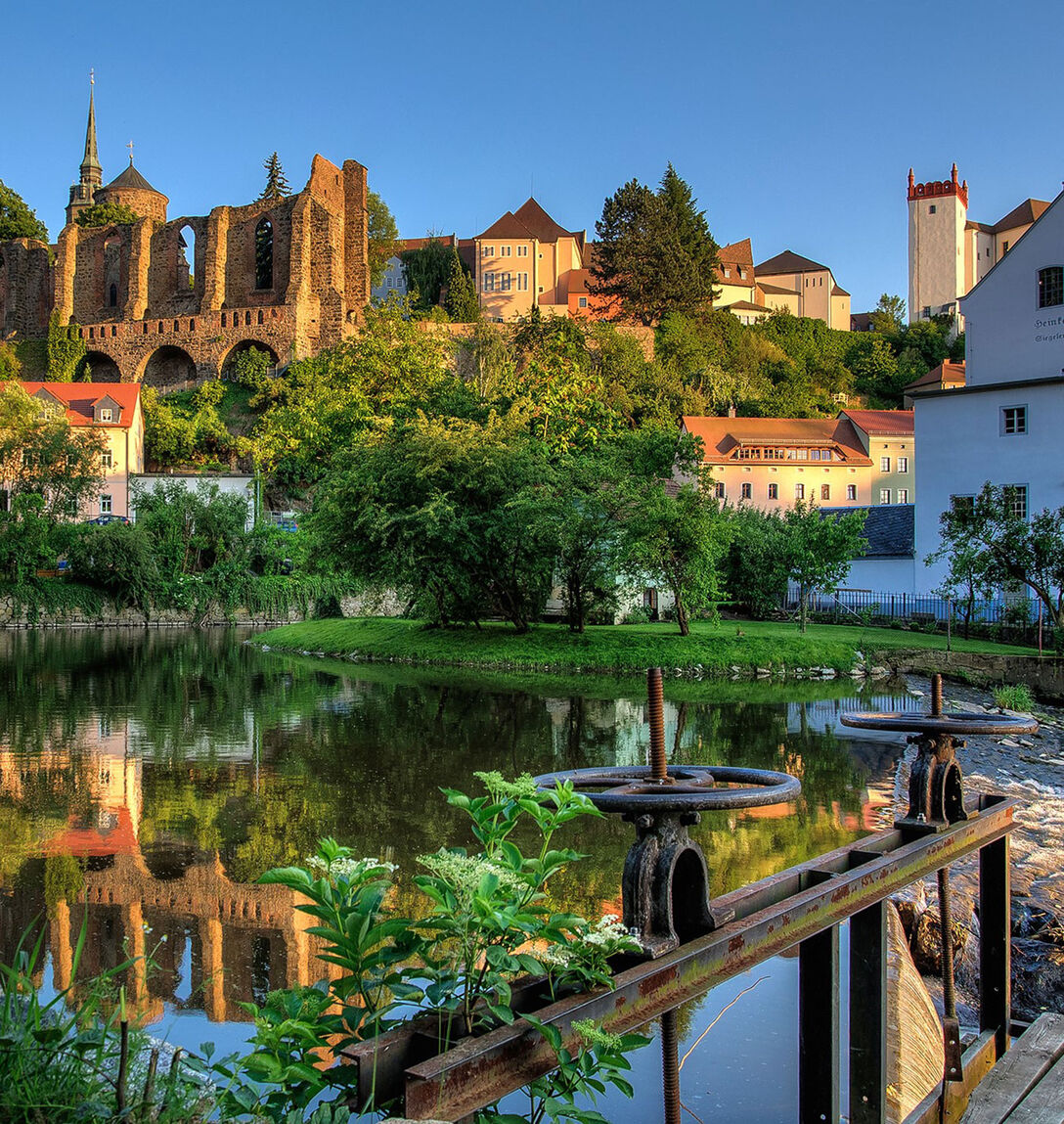 Opłaca się także zrobić mały objazd i przejechać mostem Scharfenwegbrücke, a potem pod górę do Mostu Pokoju (Friedensbrücke), aby stamtąd móc zachwycić się wspaniałą panoramą Starego Miasta.