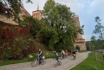 Opłaca się także zrobić mały objazd i przejechać mostem Scharfenwegbrücke, a potem pod górę do Mostu Pokoju (Friedensbrücke), aby stamtąd móc zachwycić się wspaniałą panoramą Starego Miasta.