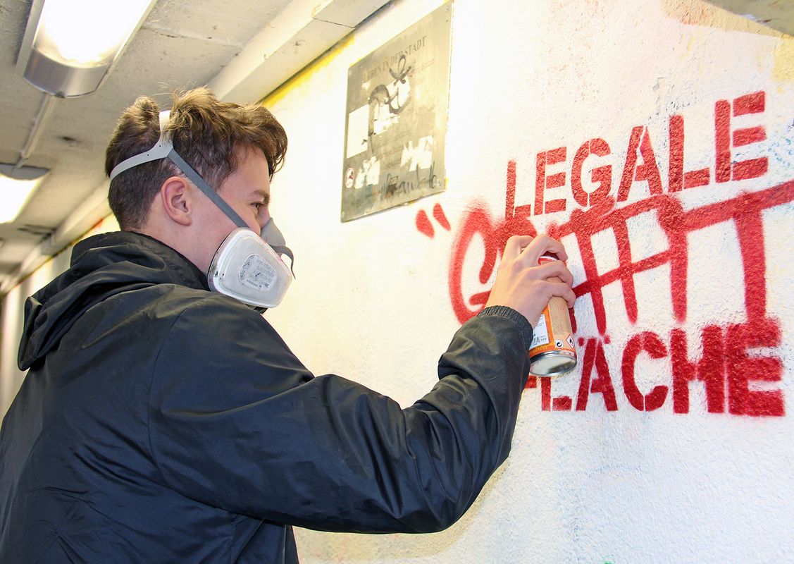 Die Workshops finden vom 24. bis 28. September, jeweils von 15.00 bis 19.00 Uhr, statt. Im Verlauf der Workshops werden dann alle fünf Flächen an je einem Tag gestaltet. Los ging es bereits am 24. September auf dem Gelände vom TiK – Treff im Keller. Am Dienstag folgte der Tunnel am Kornmarkt-Center. Hier machte sich Baubürgermeisterin Juliane Naumann ein Bild vom neuen Angebot: „Ich finde das Angebot grundsätzlich toll, weil es mehrere Themen bindet“, so Naumann. „Es ist aber auch sehr zu begrüßen, dass nicht ausschließlich Wände auf Hinterhöfen, sondern auch öffentliche Flächen gestaltet werden“. Mittwoch und Donnerstag folgen der Skateplatz in Gesundbrunnen und die Seminarstraße 23. Den Abschluss am Freitag bildet die Turnhallenwand der Dr.-Salvador-Allende-Oberschule. „An anderen Stellen bleibt sprayen trotzdem illegal“, ergänzt Juliane Naumann. „Die Erfahrungen aus anderen Städten zeigen aber, dass eine teilweise Legalisierung Erfolg hat“.