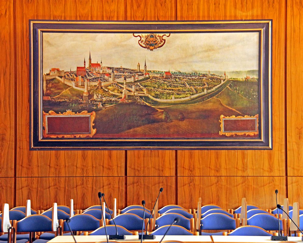 In der sitzungsfreien Zeit wurde die Reproduktion eines 3,90 x 1,44 m großen Ölgemäldes an der Rückseite des Saales aufgehängt. Es zeigt Bautzen vor dem Stadtbrand 1620. Das Original hatte der Maler Matthäus Crocinus im Jahr 1638 gemalt, ein böhmischer Exulant, der Ende des 16. Jahrhunderts nach Bautzen gekommen war. Das Gemälde hatte der Künstler seinerzeit im Auftrag des Stadtrates gemalt – genau wie eine Reihe von Portraits Bautzener Bürgermeister, die heute im Museum bewahrt werden. Sein großes Bautzen-Gemälde schmückte bis 2004 den Stadtratssaal. In den Jahren 2011/2012 wurde es restauriert und ist seitdem im Museum zu sehen, wo es besser vor schädlichen Umwelteinflüssen geschützt ist als im Gewandhaus. Im Stadtratssaal waren seit einigen Jahren nur noch die Umrisse des einstigen Wandschmucks zu erkennen. In der Sommerpause wurde nun an der alten Stelle eine Reproduktion des Gemäldes angebracht, die Pro Museo – Förderverein des Museums Bautzen e.V. gespendet hat.