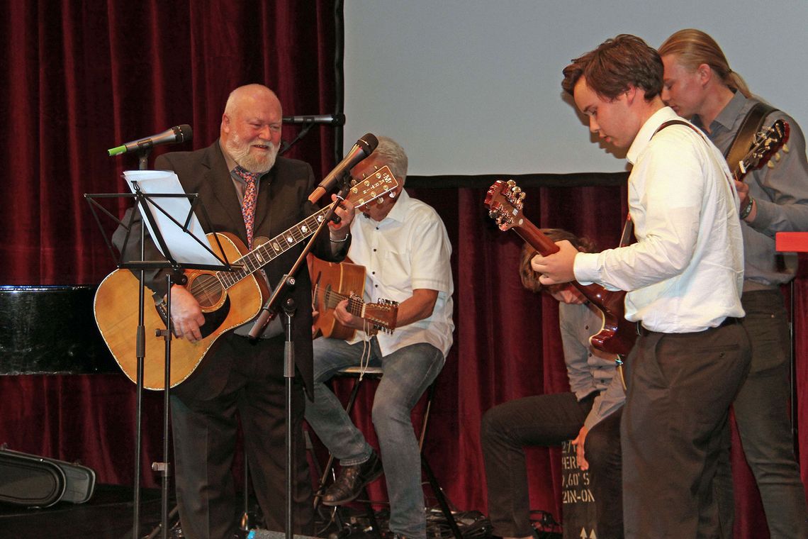 Für einen sehr emotionalen Moment sorgte ein musikalischer Part im Rahmen der Festveranstaltung. Christian Schramm war immer mit Leib und Seele Musiker, spielte mit Freunden in einer Band. Nach dem Ende seiner Politikerkarriere wollte er die Band gern mal wieder zusammenbringen, leider ergab sich diese Gelegenheit nie. Nun ergriffen die Organisatoren der Festveranstaltung die Initiative und holte Friedemann Böhme, Walter Morlock und Mirko Scholze in den Probenraum. Dort fanden sie in Florian Tilgner, Lukas Wucht und Tobias Gräubig junge Unterstützung. Nach einem kurzen Intro luden sie Christian Schramm ein, gemeinsam einen Titel aus ihrer aktiven Zeit als Musiker zu intonieren. Dann übergaben sie quasi den Staffelstab an die drei jungen Musiker, die den zweiten Teil der Veranstaltung, die Verleihung der „Ratsmedaille der Stadt Bautzen“ an Absolventen Bautzener Schulen, einleiteten.