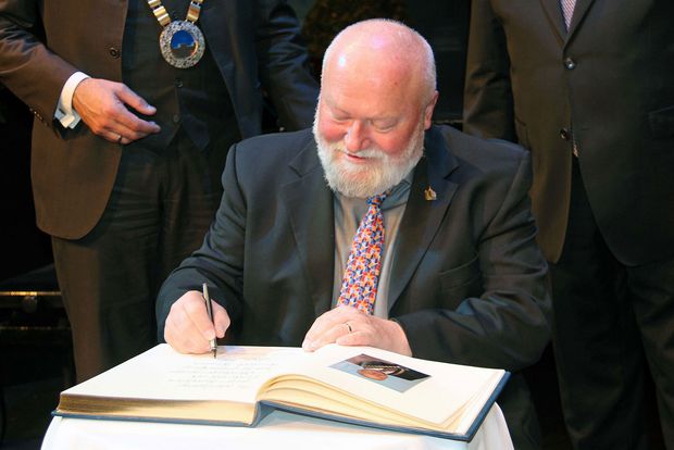 10 Unterzeichner hatte ein parteiübergreifender Antrag, nach dem Herr Christian Schramm als Anerkennung für 25 Jahre Tätigkeit als Bürgermeister bzw. Oberbürgermeister der Stadt Bautzen, mit der Ehrenbürgerschaft ausgezeichnet werden sollte. Es ist die höchste Auszeichnung, die von den Bautzener Stadträten überhaupt vergeben werden darf. Mit der Ehrung sollten sein jahrzehntelanges und nachhaltiges Engagement für die Stadtentwicklung selbst sowie für die Neugestaltung der freiheitlich demokratischen Grundordnung in unserem Land gewürdigt werden. Im Rahmen einer Feierstunde am 18. September im Bautzener Burgtheater erfolgte nun die Verleihung der Ehrenbürgerwürde an Herrn Christian Schramm. Etwa 150 geladene Gäste wohnten dem Ereignis bei. Der ehemalige Bürgermeister für Wirtschaft, Finanzen, Bildung und Soziales, Herr Michael Böhmer, würdigte in seiner Laudatio Schramms Einsatz für das Gemeinwohl und die Stadt Bautzen.