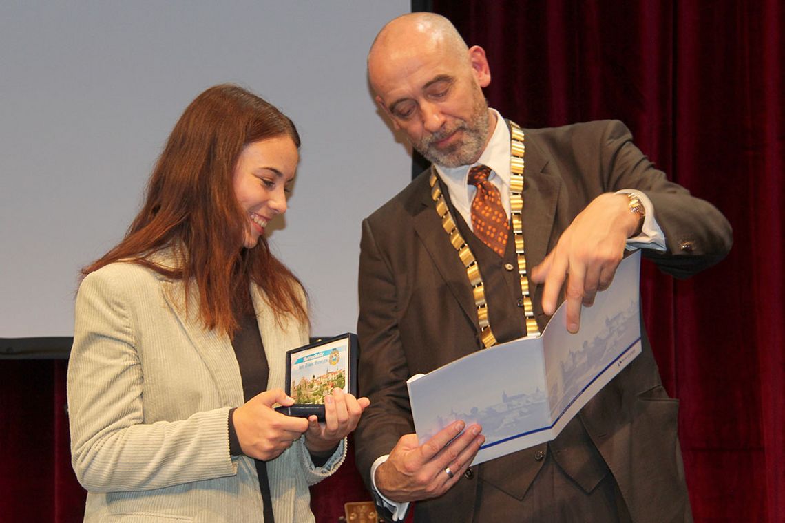 Erstmals in diesem Jahr hat der Stadtrat die „Ratsmedaille der Stadt Bautzen“ vergeben. Ihre Historie findet die Auszeichnung zwischen den Jahren zwischen 1782 und 1896. Damals wurden die besten Absolventen der Bautzener Gymnasien und Realschulen regelmäßig mit einer Ehrenmedaille ausgezeichnet. Der Numismatische Verein zu Bautzen e.V. regte an, diese Tradition wieder aufzunehmen. Die Stadtratsfraktion der CDU unterstützte das Anliegen mit einem entsprechenden Antrag. Die Ehrung soll die Verbindung der Schüler mit unserer Heimatstadt vertiefen und herausragende Schülerleistungen von städtischer Seite gebührend würdigen. Der Stadtrat beschloss, dazu eine Ehrenmedaille durch einen Medailleur herstellen zu lassen. Entsprechende Entwürfe präsentierte der Leistungskurs Kunst des Schiller-Gymnasiums dem Stadtrat. Diese Entwürfe sind als Grundlage für die Anfertigung einer Medaille verwendet worden.