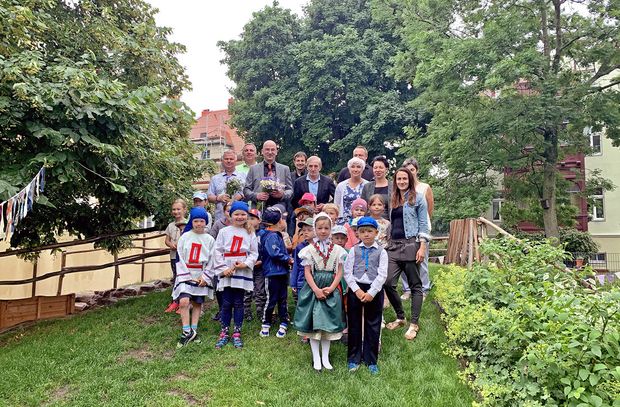 „My wšitcy dźensa swjećimy“ – „Wir alle feiern heute“ sangen die sichtlich aufgeregten Mädchen und Jungen in ihrem kleinen Eröffnungsprogramm. Es war ein gelungenes Dankeschön für das Engagement aller Beteiligten, angefangen vom Träger der Einrichtung, über die Erzieherinnen, die Eltern, die Stadt Bautzen, bis zu den Mitarbeitern der Baufirma und den Sponsoren. Bürgermeister Dr. Böhmer antwortete mit der Liedzeile „Była sym mała w pěsku sym hrała“ – „Klein bin ich gewesen, im Sand habe ich gespielt“. Damit erinnerte er daran, dass der Bau eines Spielplatzes in der Kita dringend nötig war und die Kinder nun nicht mehr nur im Sand spielen müssen.