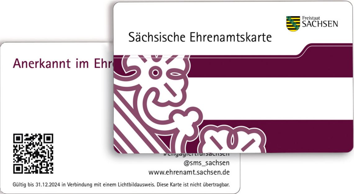 Alle weiteren Informationen zur sächsischen Ehrenamtskarte und eine Übersicht der Kooperationspartner und Vergünstigungen finden Sie unter www.ehrenamt.sachsen.de