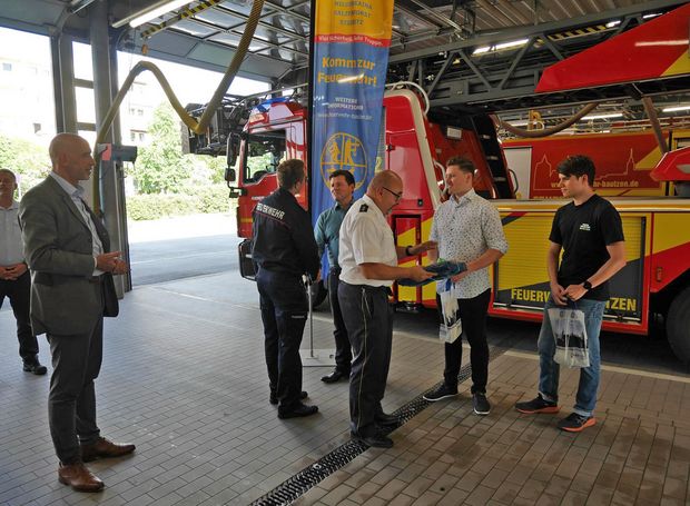 Alexander Ahrens und Revierleiter Mario Steiner überreichten kleine Dankesgeschenke seitens der Polizei und der Stadt. Bei kühlen Getränken und Snacks kamen die Anwesenden danach noch ins Gespräch und konnten bei einer Führung durch den Leiter der Feuerwehr Herrn Markus Bergander die Räumlichkeiten anschauen.