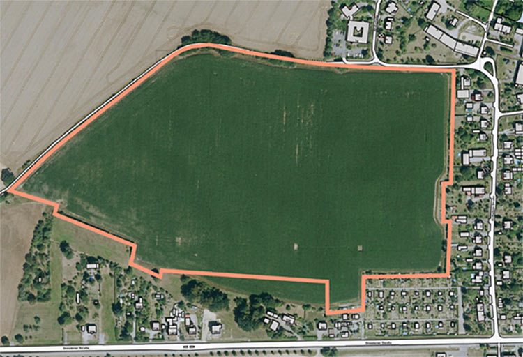 Nach Errichtung der Erschließungsanlagen, der Regenrückhaltebecken sowie der Umsetzung von Ausgleichs- und Ersatzmaßnahmen ergibt sich auf Grundlage des bisherigen Konzeptes der Stadt eine bebaubare Fläche von ca. 100.000 m².