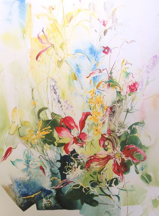 Eine Künstlerin, die ihr Handwerk verstehtAls Diplom-Designerin in der Textilindustrie (sie entwarf selbst Stoffmuster) kennt sie sich aus im spielerischen Umgang mit der Farben- und Formenvielfalt, die das Leben bietet. Natur und Abstraktion wurden zu ihrem lebenslangen Betätigungsfeld. Mit wachem Blick betrachtet die Künstlerin ihre Umwelt, die Menschen, die Natur, den Alltag – immer auf der Suche nach wunderbaren filigranen Details und Strukturen, nach Leichtigkeit und Transparenz in ihren Aquarellen. Im Alltäglichen das Besondere zu sehen und eine Oase der Erholung und Freude zu schaffen, sind wichtige Anliegen ihrer Malkunst.