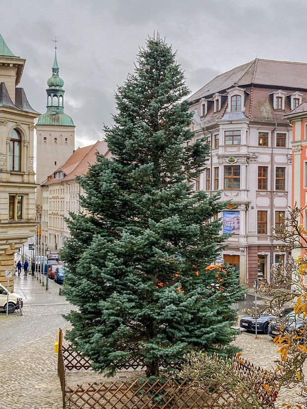 Um 10.00 Uhr trifft der Weihnachtsbaum für den Wenzelsmarkt am Hauptmarkt ein. Die Reise der 20 m hohen Koloradotanne beginnt in den frühen Morgenstunden in Oberkaina. Start ist um 7.00 Uhr. Der Baum wurde gefällt, verladen und nach Bautzen transportiert – zum Glück ohne Zwischenfälle. Zahlreiche Medienvertreter und Interessierte verfolgten das Aufstellen des Baumes. Die Anwesenden sind stark beeindruckt von der aufwendigen Prozedur. „Da hat die Stadt in diesem Jahr aber wieder einen schönen Baum, so gerade und dicht ist er gewachsen!“ merkt eine Passantin an. Pünktlich um 12.00 Uhr steht er dann in voller Pracht, umzäunt mit einem kleinen Holzzaun.