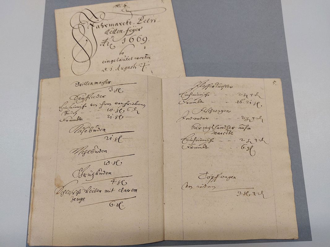 Nach den Kämmereibüchern sind nun auch die dazu gehörigen Kämmereibelege, die die städtischen Einnahmen und Ausgaben aus der Zeit von 1635 bis 1868 fast lückenlos dokumentieren, nach Trockenreinigung und Neuverpackung wieder zurück im Magazin des Stadtarchivs Bautzen. Damit stehen die Unterlagen nun (endlich) in einem wesentlich verbesserten Zustand der Forschung und sonstigen Interessierten zur Verfügung. Schon beim ersten, flüchtigen Blick in eine der Archivboxen kann man sehen, um was für einen Schatz es sich dabei handelt! Die Kämmereibelege geben uns heute einen tiefen Einblick in die damalige Zeit. Besonders die Aufwendungen für Baumaßnahmen sind detailliert nachvollziehbar. Zum Beispiel legte der städtische Baumeister, zu der genannten Zeit war das der auch über Bautzen hinaus bekannte Martin Pötzsch, dem städtischen Rat sogenannte „Bauzettel“ vor, auf denen genau vermerkt war, welche Arbeiten an städtischen Gebäuden oder Straßen anfielen, welche Materialien verwendet wurden und wie viele Personen beschäftigt waren. Weitere dieser quittungsartigen Abrechnungen finden sich auch für die Lieferung von Steinen, Holz und Dachziegel. Andere Konvolute geben Auskunft über die Vermietung städtischer Grundstücke und Gebäude. Mikroforschungen zur Handels- und Sozialgeschichte könnten auch anhand der umfangreich überlieferten Übersichten zu den Märkten, insbesondere den mehrmals jährlich stattfindenden Jahr- und Wollmärkten durchgeführt werden.