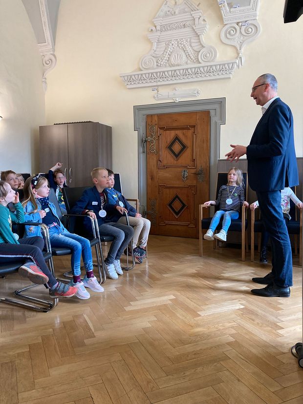 Der Kinderempfang des Oberbürgermeisters folgt einer langen Tradition im Bautzener Rathaus. Bereits seit 1994 erleben Schülerinnen und Schüler der Klassenstufen 1 bis 5 gemeinsam mit dem Oberbürgermeister einen imposanten Thementag. Corona bedingt musste der Kinderempfang einige Jahre pausieren, in diesem Jahr konnte er nun wieder stattfinden. Wie gewohnt hatte das Amt für Pressearbeit und Stadtmarketing gemeinsam mit diversen Partnern einen spannenden Tag vorbereitet. Ziel dieser Auflage war es, Kindern einen spielerischen Zugang zu mehr Bewegung und gesunder Ernährung zu ermöglichen. Für die Kinder ist es natürlich eine Auszeichnung, an diesem Event teilnehmen zu dürfen. Neben den vielen Erlebnissen nahmen sie ihre Bastelergebnisse, kleine Geschenke und Antworten auf Fragen mit nach Hause, die sie dem Stadtoberhaupt in der Sprechstunde stellen konnten. Zu den Partnern gehörte in diesem Jahr u.a. die Kinder- und Jugendbibliothek, das Museum Bautzen, der Kreissportbund, der BLV „Rot-Weiß 90“ e.V., die Firma Sportivation, die AOK Plus und viele kleine und große Helfer.