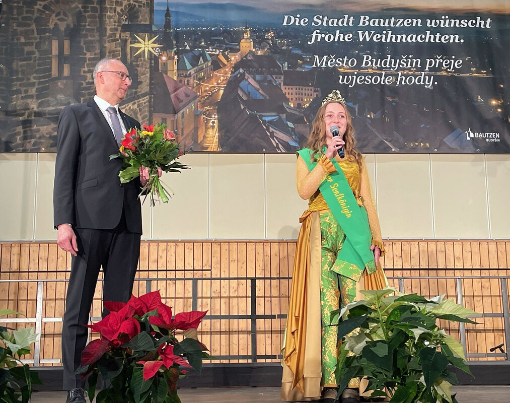 Der Höhepunkt im zweiten Teil des beschwingten Nachmittags war zweifellos der Auftritt des Oberbürgermeisters und der ersten Bautzener Senfkönigin, Vivien Lenz. Sie tanzten zur großen Freude der Anwesenden einen Schneewalzer der besonderen Art auf der Bühne der Schützenplatzhalle – und wie man erfuhr, mit nur einer Übungsstunde zuvor. Es folgten schließlich schwungvolle Aufführungen der Tanzschule Mühlmann und Tanzschule Neu, die das Programm der Feier abrundeten.