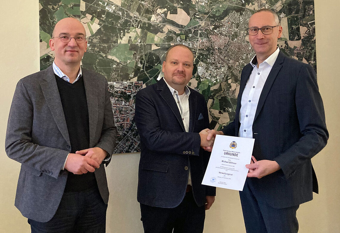 „Ich freue mich sehr auf die neue Aufgabe und hochmotivierte Mitarbeiter in der Stadtverwaltung Bautzen. Das Ordnungsamt hat von Natur aus große Schnittstellen zu den Bürgern und Akteuren in Bautzen. Dieser Rolle möchte ich gerecht werden und als Partner für die unterschiedlichen Angelegenheiten agieren“, so Michael Böhmer. Seine Ernennungsurkunde erhielt er noch im alten Jahr von Oberbürgermeister Karsten Vogt und seinen direktem Vorgesetzten, Bürgermeister Dr. Robert Böhmer.