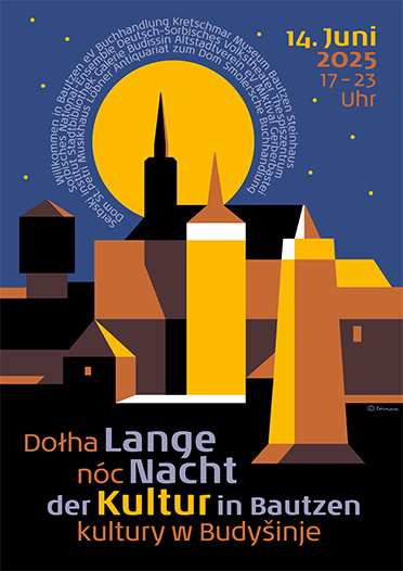Am 14. Juni ist es wieder soweit. Von 17 bis 23 Uhr findet in Bautzen die Lange Nacht der Kultur statt, die unter der Schirmherrschaft des Bautzener Oberbürgermeisters Karsten Vogt steht. Bautzener Kulturakteure präsentieren ihr vielfältiges Miteinander in einem abwechslungsreichen Programm. In diesem Jahr haben sich dafür 16 Partner zusammengefunden: Deutsch-Sorbisches Volkstheater, Thespis-Zentrum, Smoler’sche Buchhandlung (zusammen mit Sorbischem Institut), Sorbisches Nationalensemble, Museum Bautzen, Musikhaus Löbner, Mühltor (Verein Altstadt e.V.), Buchhandlung R. Kretschmar, Steinhaus, Dom St. Petri, Antiquariat am Dom, Schülerstr. 6 (Willkommen in Bautzen e.V.), Galerie Budissin (Kunstverein Bautzen e.V.), Stadtbibliothek, Jugendherberge (Gerberbastei) und Stadtwall 12 (MiKtival – Mugge im Garten) sind die Orte des Geschehens. Die Partner, die in der Langen Nacht der Kultur die Bautzener Kulturszene gemeinsam sichtbar machen, haben zusammen 32 Programmpunkte für ihre Gäste vorbereitet. Neben den großen und kleinen Partnern, die in der Vergangenheit alljährlich mitwirkten, ist das Steinhaus in diesem Jahr als neuer Partner mit einem Ausstellungsprojekt dabei. Ebenfalls neu dazugekommen ist das MiKtival am Stadtwall 12, welches die Vielfalt des Gesamtprogramms mit seinen Angeboten deutlich bereichert.