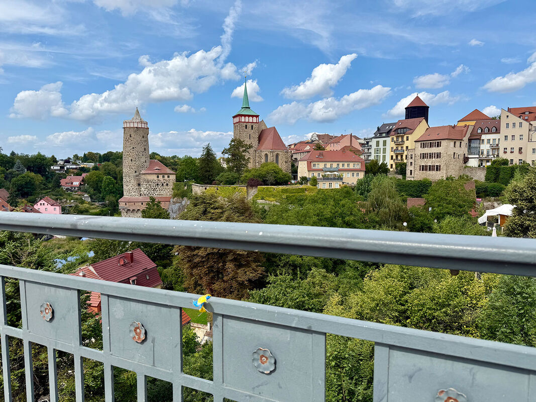 Zum heutigen Tag der Oberlausitz hatte die Stadtverwaltung – auf Beschluss des Stadtrates – das Geländer der Friedensbrücke mit blau-gelben Schleifenbändern schmücken lassen. Die Gestaltung sollte symbolisch auf den regionalen Aktionstag aufmerksam machen. Ergänzend wurde die Brücke in den sorbischen Farben dekoriert. Die Anbringung der Schleifen erfolgte zu Beginn der Woche.