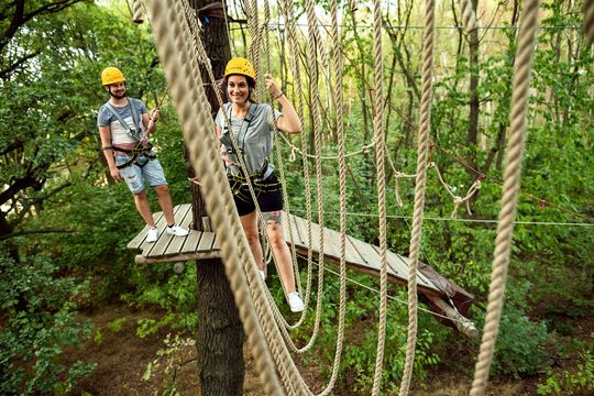 Das Klettererlebnis für Jung und Alt: Mehr als 50 Kletterübungen und 230 Meter lange Seilrutschen sorgen für ein unvergessliches Erlebnis. Der Hochseilgarten bietet verschiedene Kletterangebote mit einem Mix aus Pfahlanlage und Bäumen.