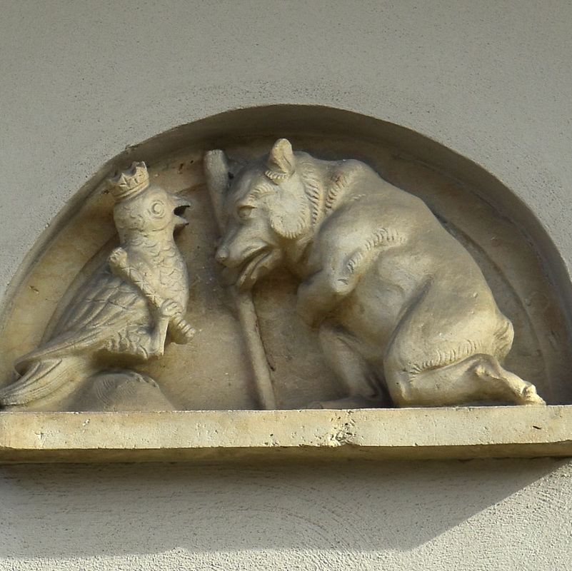 u.a.: Hl. Georg als Drachentöter, Gullivers Reisen, Hans im Glück, Des kleinen Hirten Glückstraum, Hänsel und Gretel, Rotkäppchen, Münchhausen auf der Kanonenkugel, Der gestiefelte Kater, Igel und Hase, Froschkönig, Das tapfere Schneiderlein, Eulenspiegel, 4 Gruppen spielender Kinder, mehrere lustige Tier- und Kindergestalten